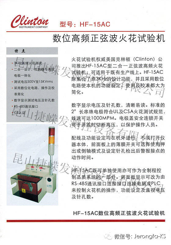 為了讓客戶(hù)能夠更直觀的了解美國(guó)克林頓高頻火花試驗(yàn)機(jī)HF-15AC系列,并認(rèn)可CLINTON火花機(jī)的使用性能,我司現(xiàn)推出免費(fèi)試機(jī)活動(dòng)。讓我們的儀器在您的工廠中試運(yùn)行3-5天,從實(shí)踐中發(fā)現(xiàn)克林頓火花機(jī)的優(yōu)勢(shì)!如有需求請(qǐng)隨時(shí)致電我們!